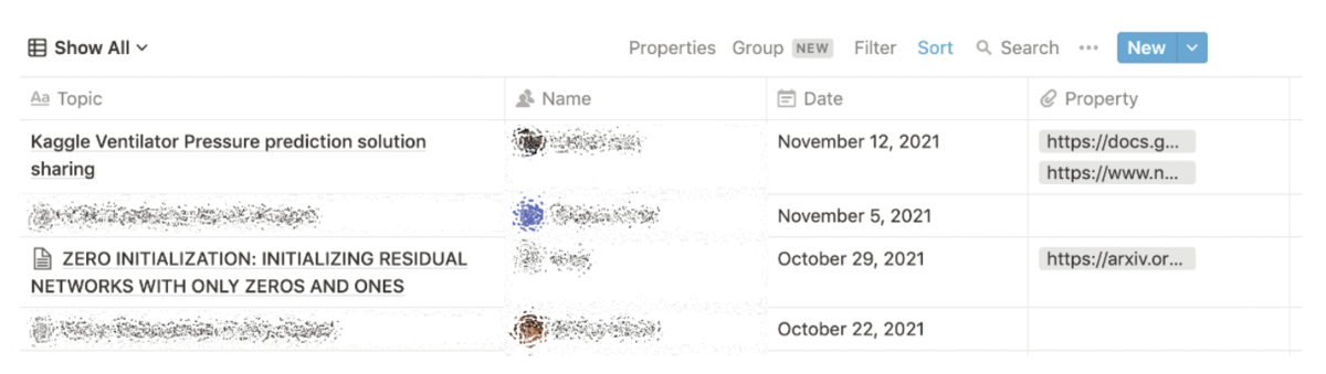 具体的には、最近読んだ論文の紹介、ライブラリの機能紹介、自身が参加したKaggleコンペのソリューション共有、直近の業務でのプロジェクトの共有など幅広く行っています。また、ただ共有するだけでなく、「こういう技術の適応は出来ないのか?」「これも近いものであるよね」などインタラクティブなやりとりもあります。