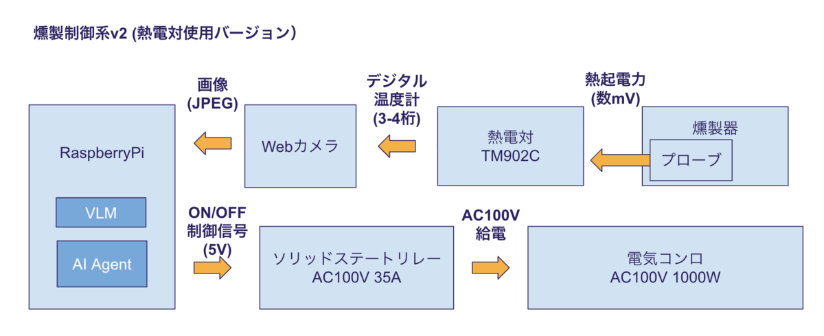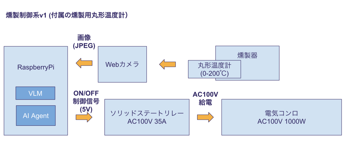 ABEJAの大田黒です。ABEJAアドベントカレンダー2025の3日目の記事です。今回はVision-Language Model(VLM)とAI エージェントを使って、「いい感じの燻製を自動で作れないか?」という実験に取り組んだ内容を紹介します。ほぼネタ記事です。数年前にキャンプ用としてSOTOのキッチン香房 を購入し、最近は自宅キッチンでも手軽に燻製を楽しんでいます。ただし、家庭用ガスコンロで燻製を行う場合、熱源と燻製器の距離が調整しづらいという問題があります。焚き火やバーナーを使うアウトドア環境とは異なり、家庭用ガスコンロは火力調整の粒度が粗く、最弱火でも思った以上に温度が上がってしまうことがあります。