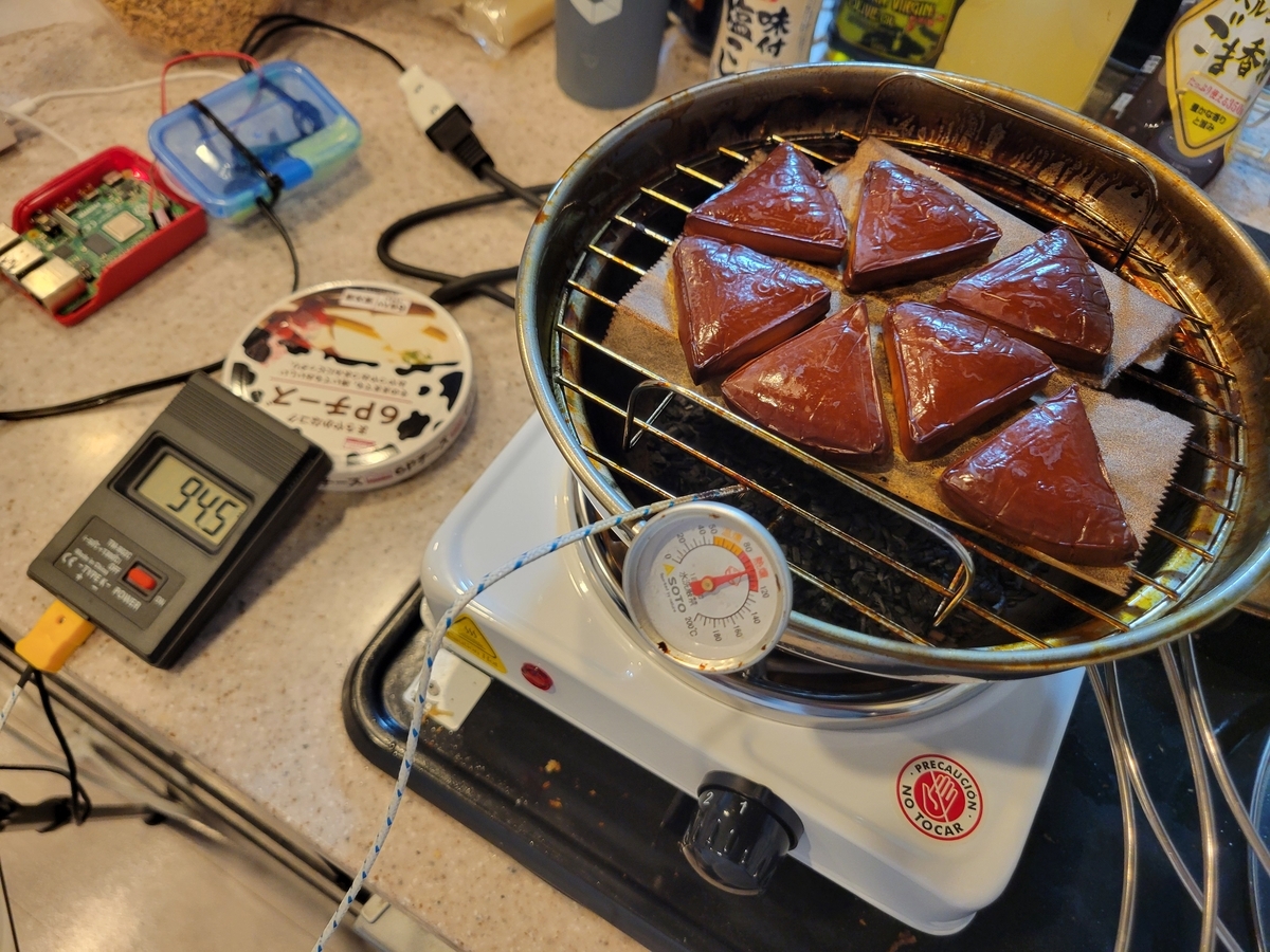 これからも少しずつ作り直しながら、より安全で、より安定して動く仕組みに育てていきます。最終的には、火事や火傷に気をつけつつ、気兼ねなく放っておけるくらい、いつでもいい感じのチーズ燻製を作れるところまで持っていきたいです。