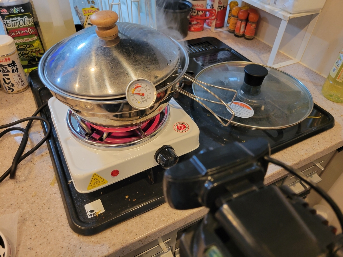 - 最弱火でも短時間で 140℃を超えてしまう(熱燻の温度から大きく逸脱)
