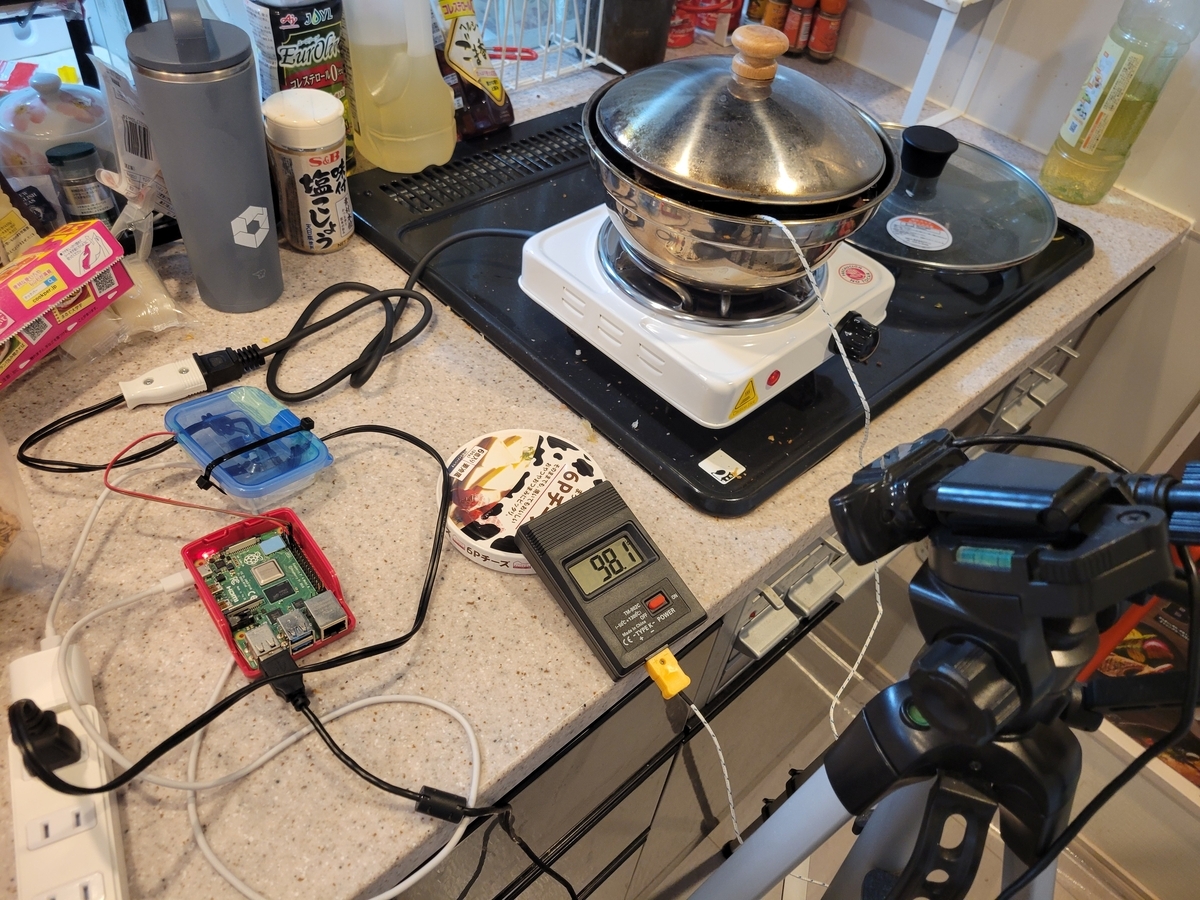 Fig 3.1.3 順調に温度が上がっていく様子。香ばしい匂いがキッチンに立ち込める。