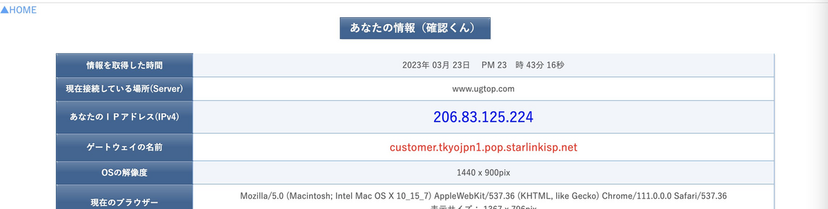 RTT時間から考慮をすると2番目のHOPではすでに地上局にパケットが下りている気がします。衛星の中でL3以上ルーティングされていたら面白いなと思っていたのですが、シンプルにL2をつなぐ土管のような立ち位置になっているようですね。「100.64.0.1」というアドレスをみる感じだと、CGNAT(Carrier Grade NAT)・LSN(Large Scale NAT)が利用されていそうですね。キャリア系のネットワーク感がプンプンしてきます。